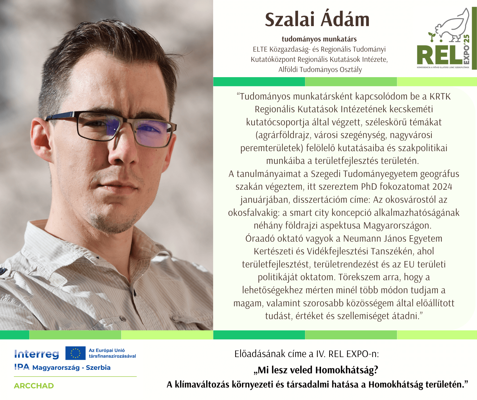A 2025-ös REL Expo megvalósítása az Interreg VI-A IPA Magyarország–Szerbia Program keretében zajlik, az ARCCHAD projekt (HUSRB/23R/11/008) részeként, a KDMFÜ Közép-Duna Menti Fejlesztési Ügynökség Nonprofit Kft. vezetésével. A projektről bővebben itt olvashat: https://hungary-serbia.eu/hu/projektek/arcchad